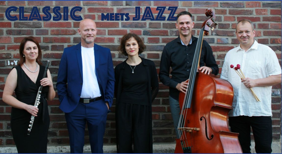 Wenn eine klassische Sängerin und eine klassische Querflötistin auf drei Jazzer treffen, prallen musikalische Welten aufeinander. Das Classic Meets Jazz Ensemble nutzt diese Energie, um das Beste ihrer Genres zusammen zu bringen. Von Renaissance bis Jazz und Latin werden die Stilgrenzen überschritten, mit swingendem Blues, schwebenden Querflötentönen, perkussiven Grooves und mit einem glockenklaren Sopran wird die große Vielfalt in der Musik zelebriert.