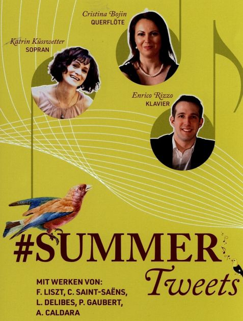 Viele kleine Musikstücke schwirren wie Vogelgezwitscher durch die Nacht in wechselnden Besetzungen: Sopran, Querflöte und Klavier erfreuen uns mit Werken von F. Liszt, C. Saint-Saens, L. Delibes, P. Gaubert A. Caldara u.a. Katrin Küsswetter, Sopran, Cristina Bojin, Querflöte und Enrico Rizzo, Klavier, erfreuen uns mit sommerlicher Musik, die so gut zur Jahreszeit passt.