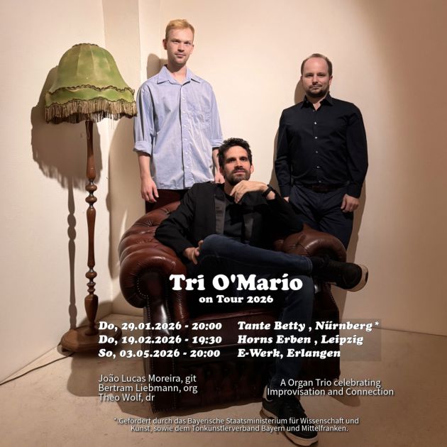 Tri O’Marío, die sich mit Orgel, Gitarre und Drum-Set ihre Traumbesetzung geschaffen haben, um jede gewünschte Stimmung und Energie zu erzeugen. Songs aus dem traditionellen Jazz-Repertoire, Funky-Fusion- Elemente und brasilianische Themen haben die internationale Besetzung inspiriert ihre eigenen Songs zu schreiben und diese nun vorzustellen. Es wird abwechslungsreich, smooth und groovy.