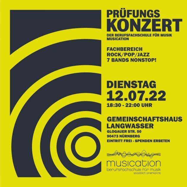 Prüfungskonzert Rock/Pop/Jazz der Berufsfachschule für Musik MUSICATION @ Gemeinschaftshaus Langwasser