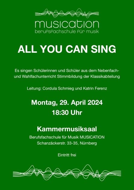 Es singen Schülerinnen und Schüler aus dem Neben- und Wahlfach Stimmbildung des Fachbereich Klassik der Berufsfachschule für Musik MUSICATION